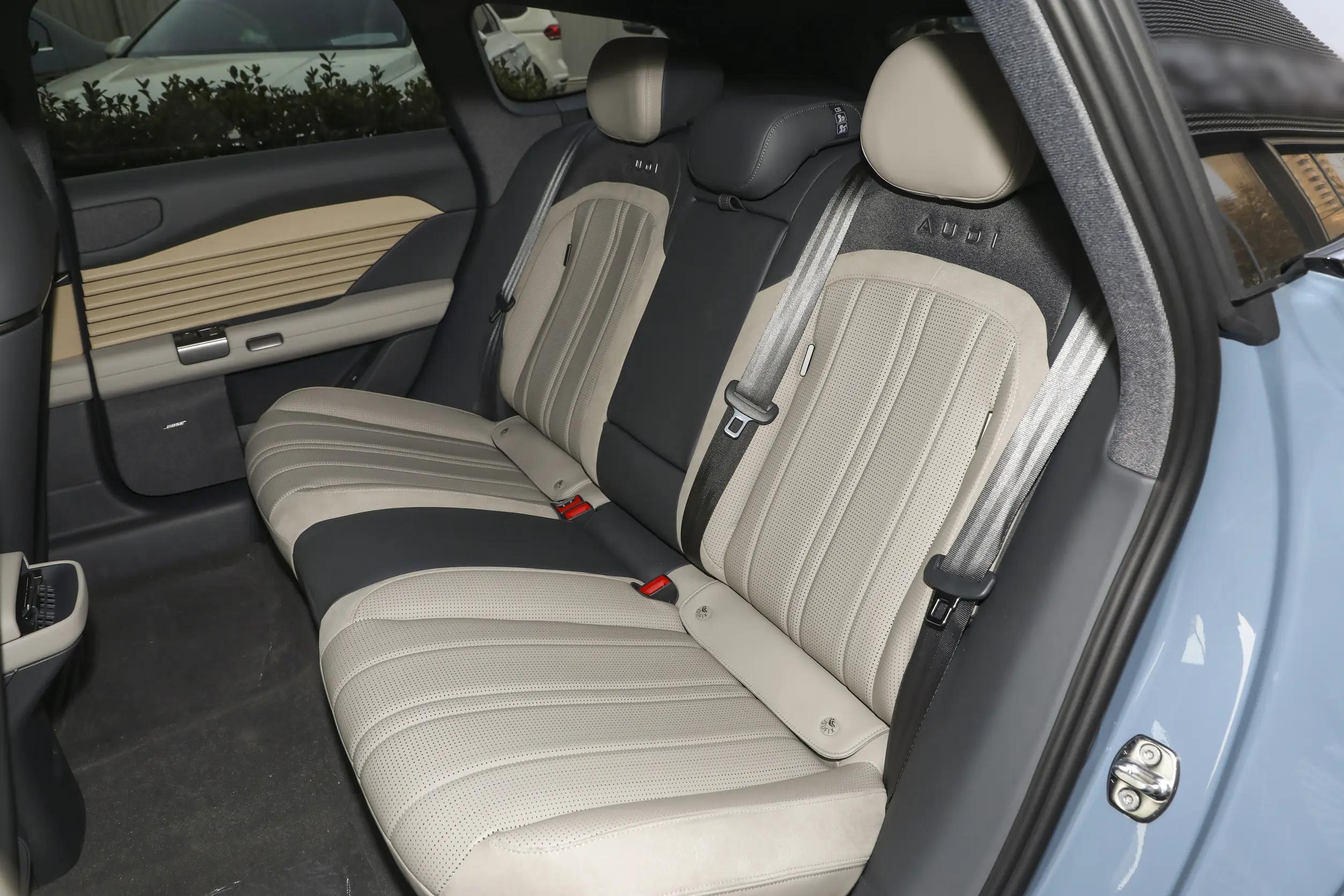 除了上面说的三点,奥迪E5 Sportback在空间、续航和舒适性方面的表现也很出色,完全能满足日常家用的需求。空间方面,这台车的轴距有2950mm,后排空间特别宽敞,我身高180cm,坐在后排腿部还有两拳多的距离,头部空间也很充裕,不会觉得压抑。而且后排地板是纯平的,中间坐人的时候也不会觉得局促,就算是满载五个人,也能保证每个人的舒适性。后备厢的容积也很大,平时放几个行李箱、购物袋完全没问题,后排座椅还支持比例放倒,放倒后能拓展出更大的储物空间,偶尔装个大件物品也很方便。