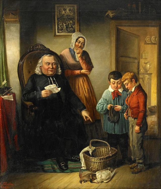 Salentin从不追求宏大的历史叙事,他更爱蹲在村口酒馆的角落,观察醉汉拍桌大笑、妇人交换耳语。在《乡村婚礼》中,乐手的琴弓歪斜,孩童钻过桌底偷捡糖块,宾客的微醺与局促被勾勒得鲜活淋漓。有人说他的画是“市井的镜子”,照见旧时代德国最本真的呼吸。