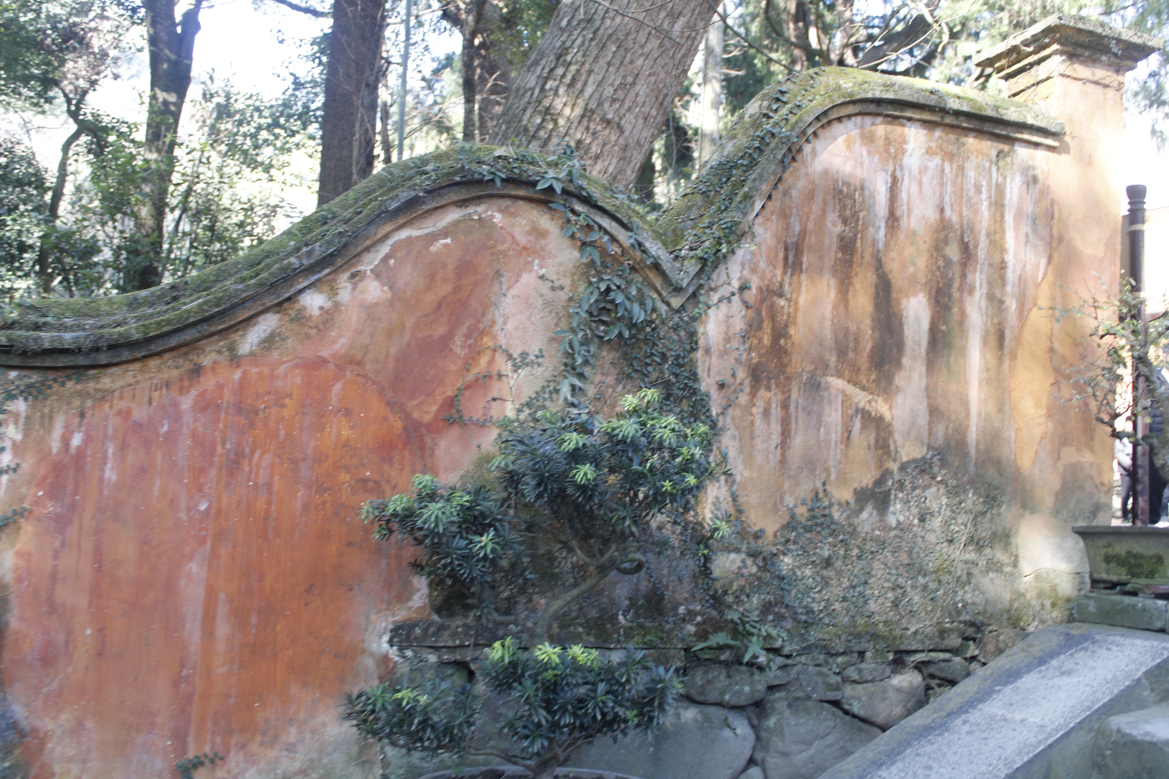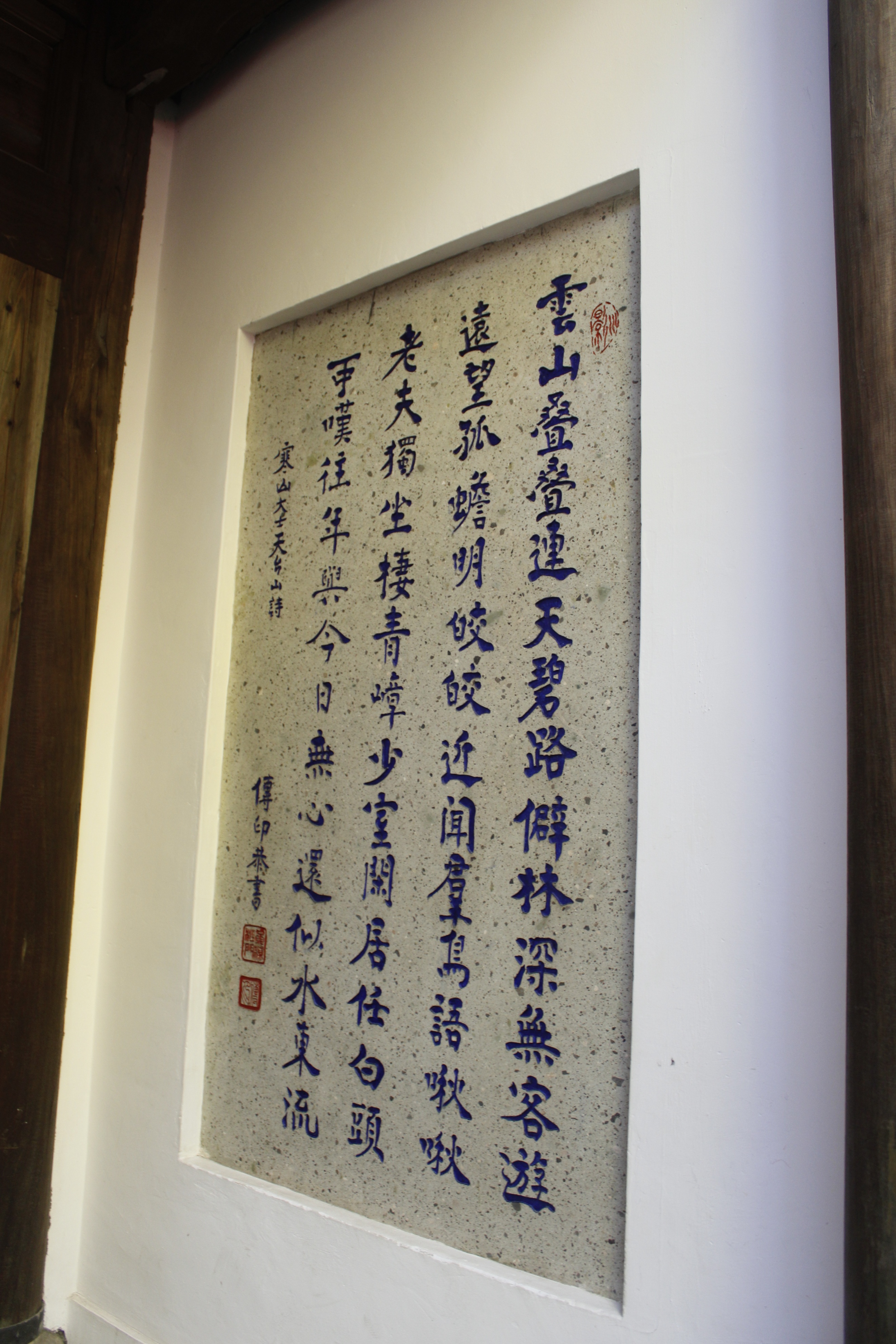 寺院门口有一块碑,上面写着“一行到此水西流”。