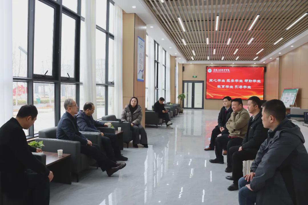 12月24日上午,信阳市人力资源和社会保障局就业创业服务中心副主任朱宏洲、科长李想一行,在县人社局局长熊德华、副局长张兰生陪同下莅临信阳工程职业学院,检查指导信阳鸿信职业技能培训学校年度创业培训工作。河南世纪教育科技集团总经理、信阳工程职业学院副理事长张东斌,副总经理李锋然等热情接待并介绍相关工作。