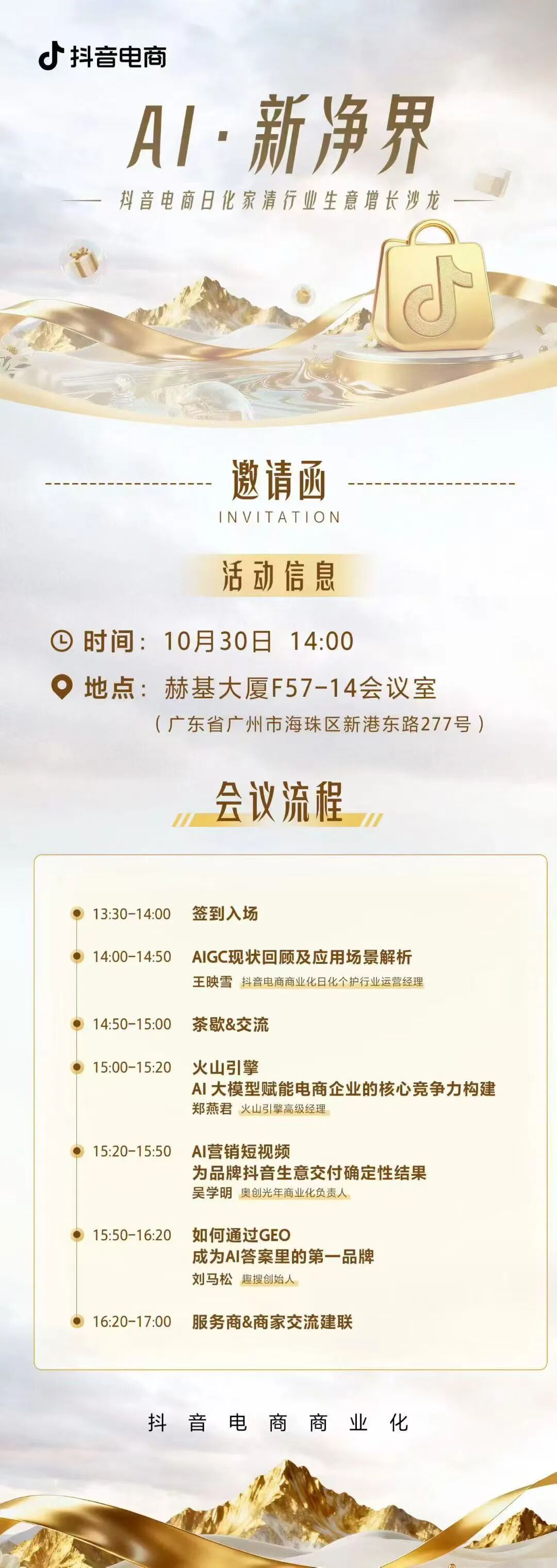 10月30日,在抖音电商举办的“AI・新净界——日化家清行业生意增长沙龙”上,趣搜AI创始人刘马松作为特邀嘉宾,深度分享了《如何通过GEO成为AI答案里的第一品牌》,为品牌破解“AI时代品牌失声”的难题,提供了实战解法。
