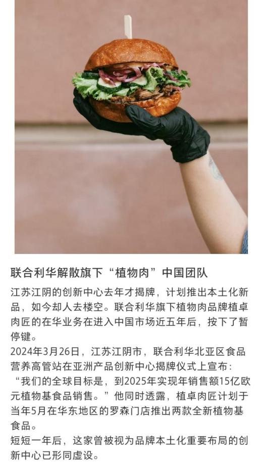 就连老牌食品巨头的人造肉团队也偃旗息鼓。(图/社交平台截图)