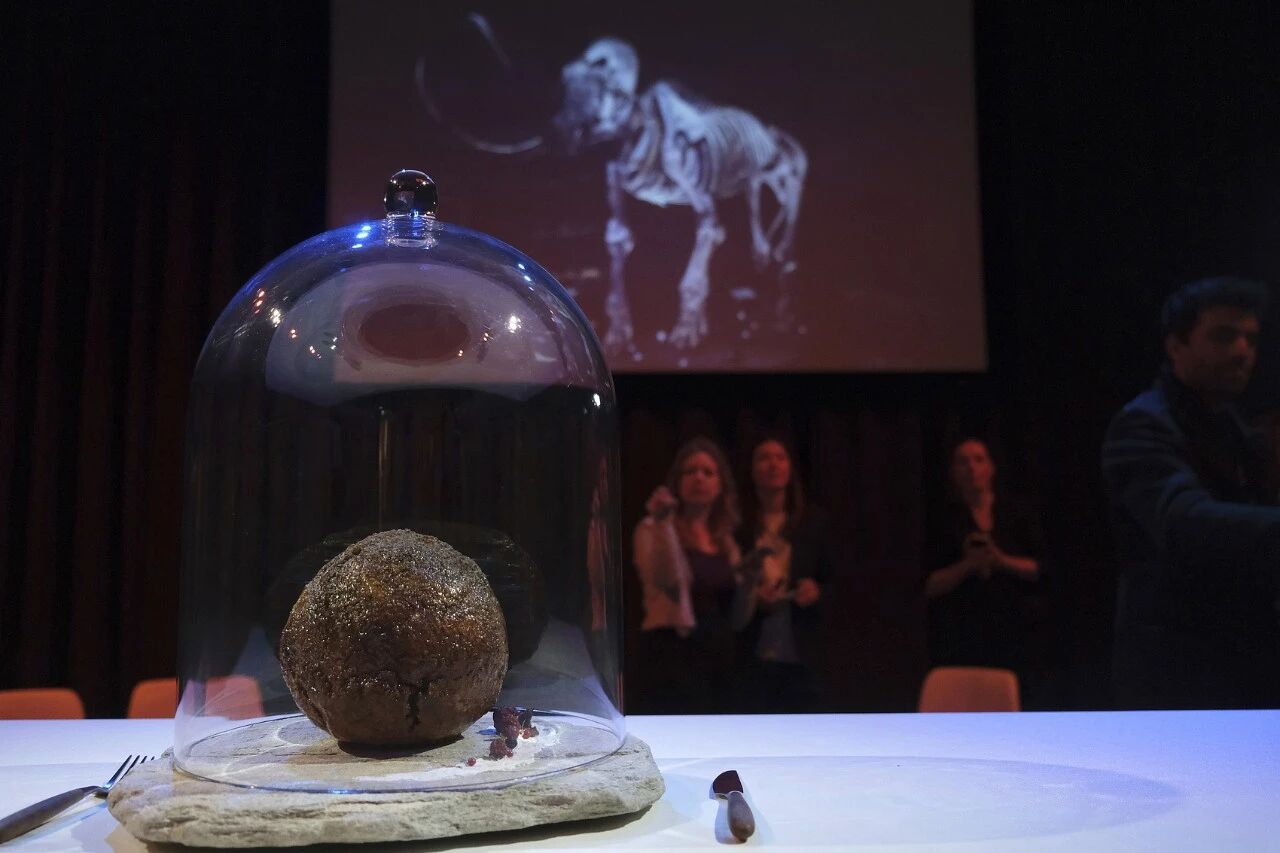 疯狂的人造肉一出生就打着资本的烙印。2023年3月28日,荷兰尼莫科学博物馆展出了一个使用猛犸象基因序列制成的肉丸。(图/视觉中国)