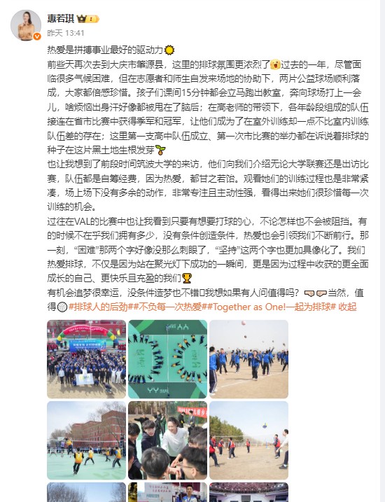 4月13日,惠若琪在自己的社交平台上发了帖子,上来第一句话就直言“热爱是拼搏事业最好的驱动力”。