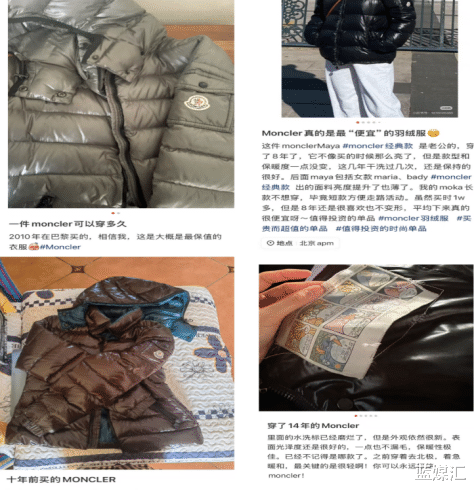 不少网友在社交媒体上晒出,穿了十几年的Moncler“战衣”。