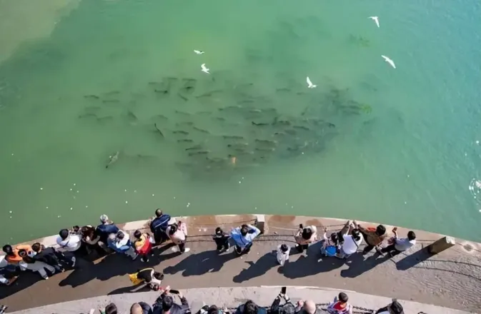 长江上游的宜宾,大规模的鱼儿在岷江、金沙江、长江汇合区域活动,各种野生鱼类成群来回游弋,成了市民们的“观赏鱼”等等,不少朋友在这个区域我相信都“喂过鱼”等等。