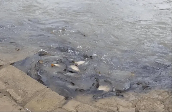 安徽池州市黄湓大桥黄湓闸下,鱼群翻腾,甚至还因为水中的鱼儿太多,导致江水都被“染黑”了——鱼儿黑压压一片,这是相当罕见的,当地村民表示:在长江边上生活60多年了,从未见过这么多鱼,真的是60年一遇了。