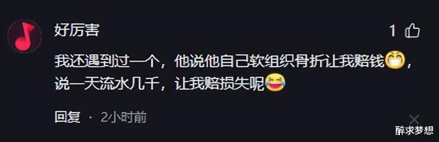 我还遇到过一个,他说他自己软组织骨折让我赔钱,说一天流水几千,让我赔损失呢