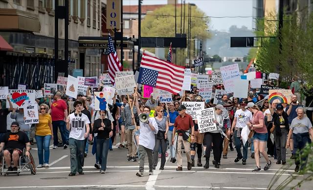 4月19日时全美50个州又同步发起约700场抗议活动,覆盖纽约、华盛顿、芝加哥等主要城市,预估参与人数达500万。