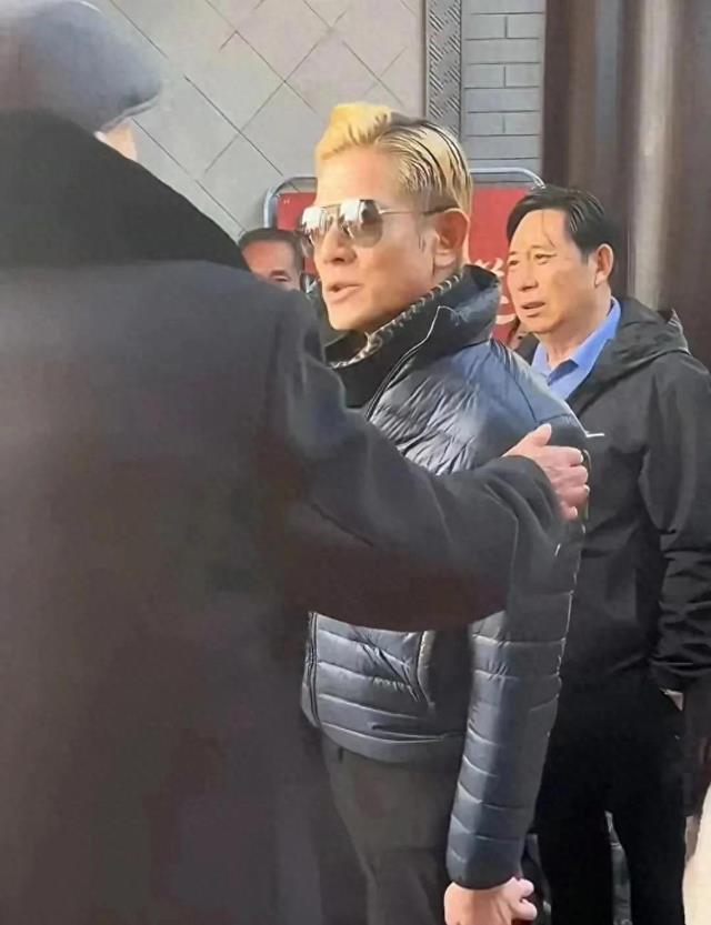 大家可以想象,郭富城身着深蓝色羽绒夹克和黑色工装裤,挑染的黄色头发在冬日的阳光下熠熠生辉,显得格外引人注目。
