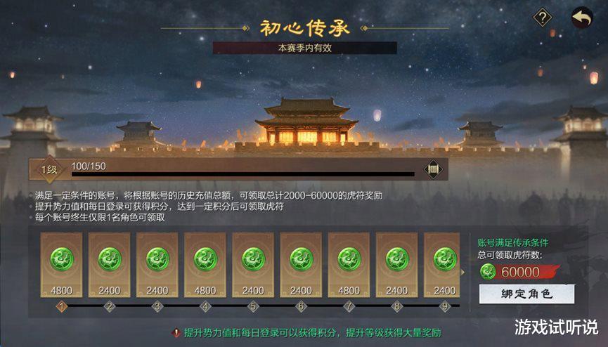 “玉玺联动主题服”为回归老玩家专门设立“初心传承”活动,对回归玩家极其友好。只要是9月24号到10月7号没登录过经典服的回归玩家,根据之前的账号情况,保底能拿2000虎符,最高能领60000虎符。而且,就算不是回归玩家,进主题服建新角色也能拿2000虎符,最快一周内就能领满。