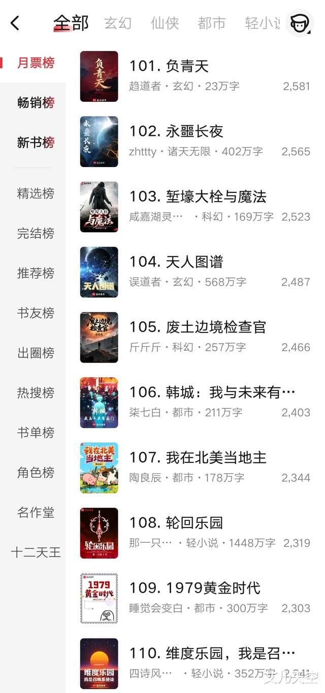 zhttty的《永噩长夜》、误道者的《天人图谱》这个月开局都没在前百,天人图谱感觉还是后面剧情不够有趣。