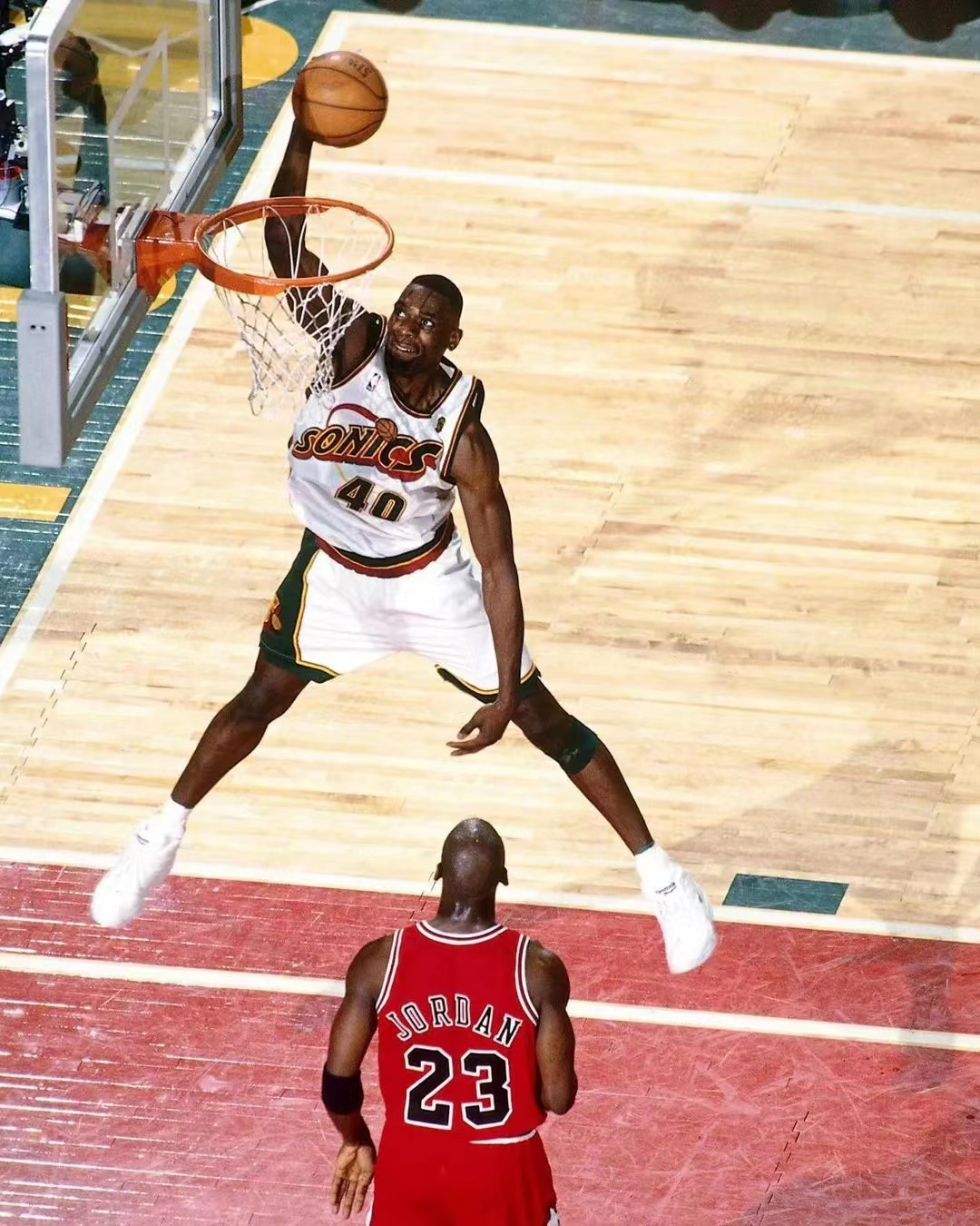 总决赛,暴力扣将,野兽派前锋代表”雨人“肖恩坎普和手套佩顿联袂而来,当赛季64胜18负的超音速在公牛面前却毫无还手之力,3-0,连下三城的公牛在第四战中遭到超音速的顽强抵抗,肖恩坎普更是在本场12/17,带领超音速成功扳回一局,第五场的超音速延续之前的火爆表现,双子星联手发威,球队后卫霍金斯拿下21分,三人20+成功击退公牛。