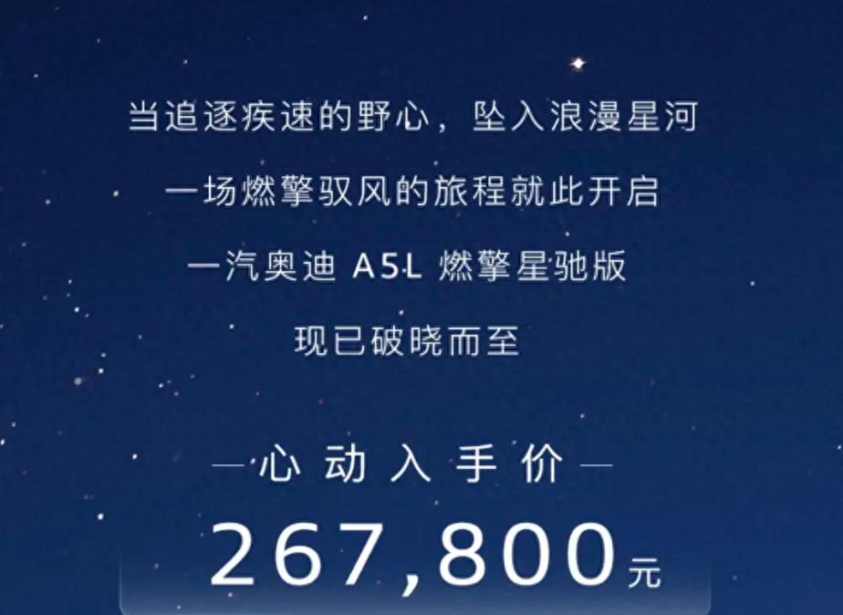 1月30日,一汽奥迪A5L新增版本——燃擎星驰版车型正式上市,指导价28.58万元,心动入手价26.78万元。新车主要针对配置进行了升级,在运动版Plus的基础上增加了19英寸轮毂、银河星空顶等,但定位低于乾崑智驾版。