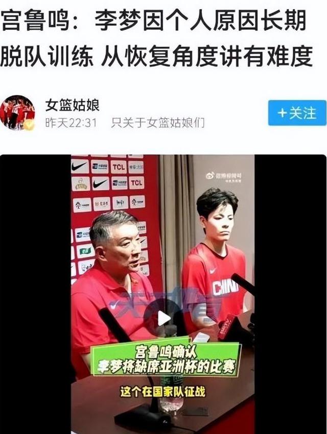 李梦频繁脱队、训练态度被质疑、小团体传闻,哪一条不是风险?在宫鲁鸣做决策的时候,她自然会被放在排除名单的前列。