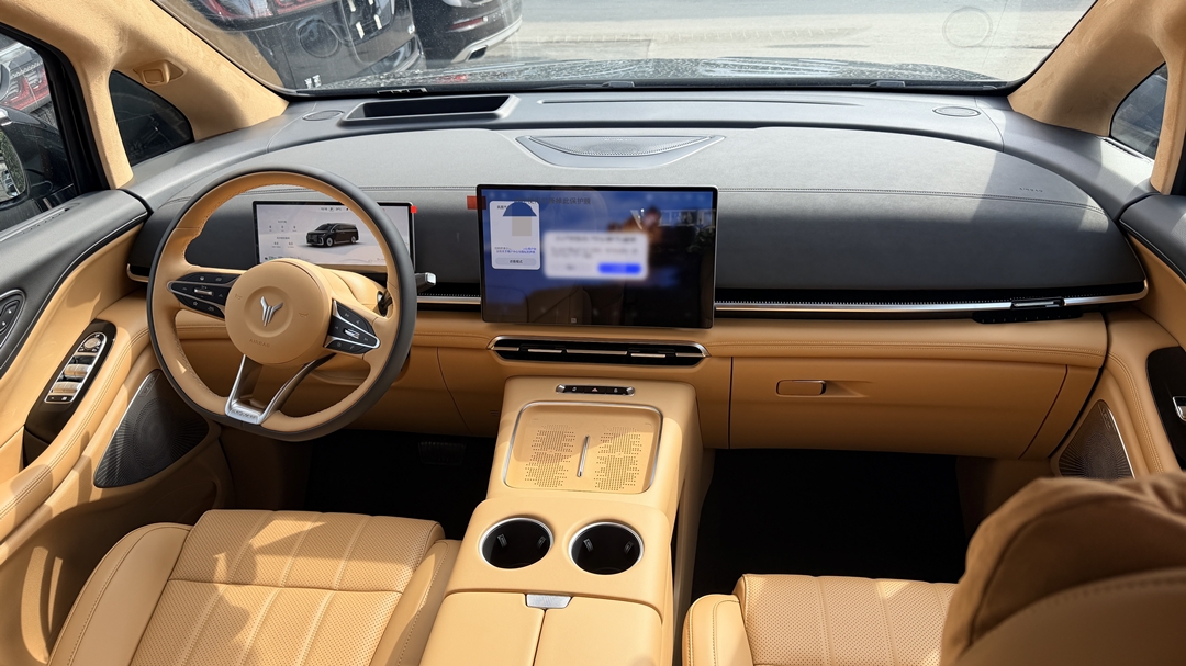 梦想家冠军版内饰设计也和2025款梦想家乾崑版保持一致,主要特征包括仪表台设计、座椅的纹路设计等,没有采用2026款车型的菱格纹和山水装饰。