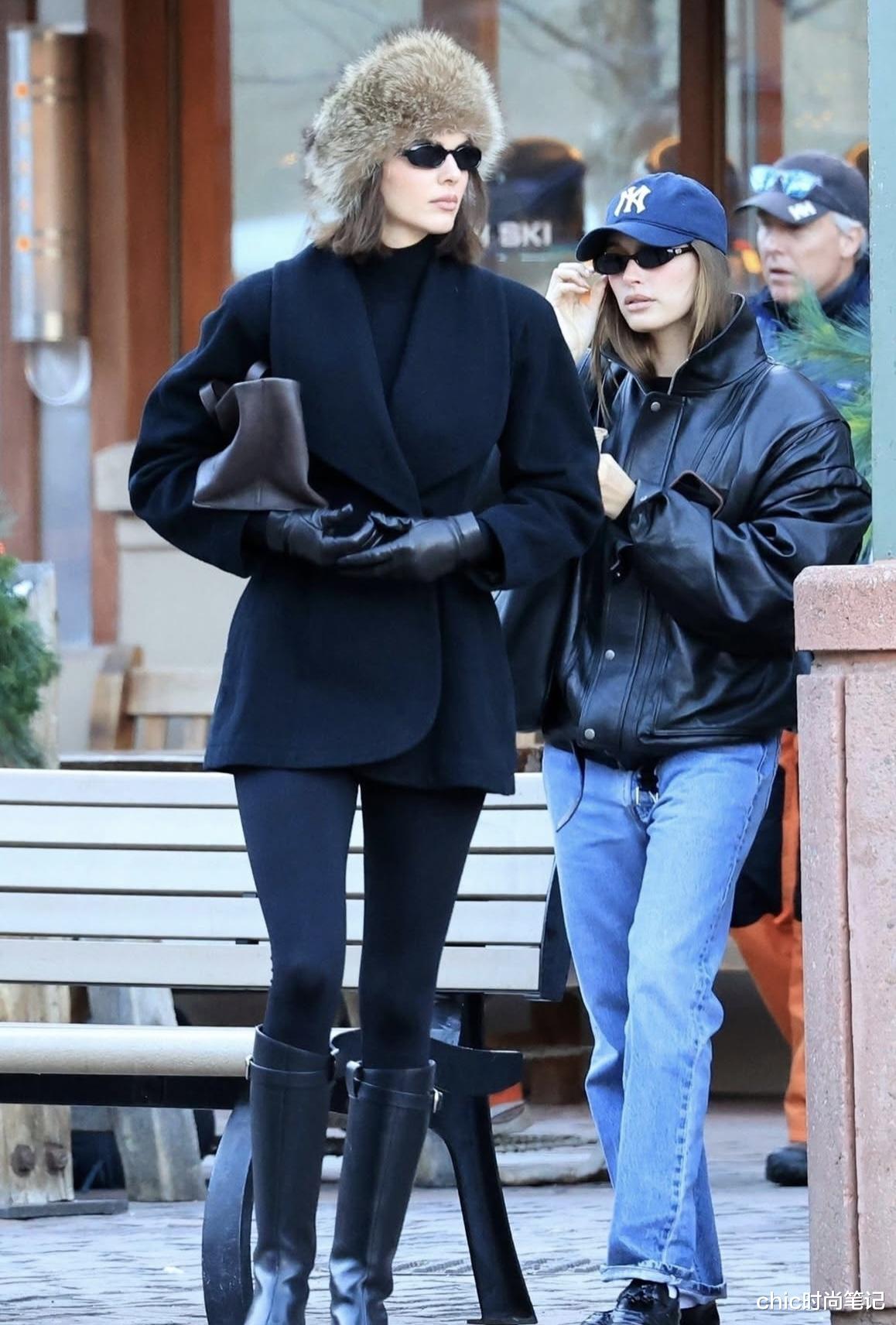 Allblack穿搭一直是Kendall的舒适区,黑色高领毛衣搭配黑色羊绒外套和黑色骑士靴,配上黑超墨镜和黑色皮手套,穿出了一种大佬的既视感,皮草帽子的点缀增加高级感。