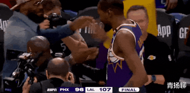 当昨天湖人与太阳比赛结束,勒布朗·詹姆斯在场边等了许久,终于找上了杜兰特。