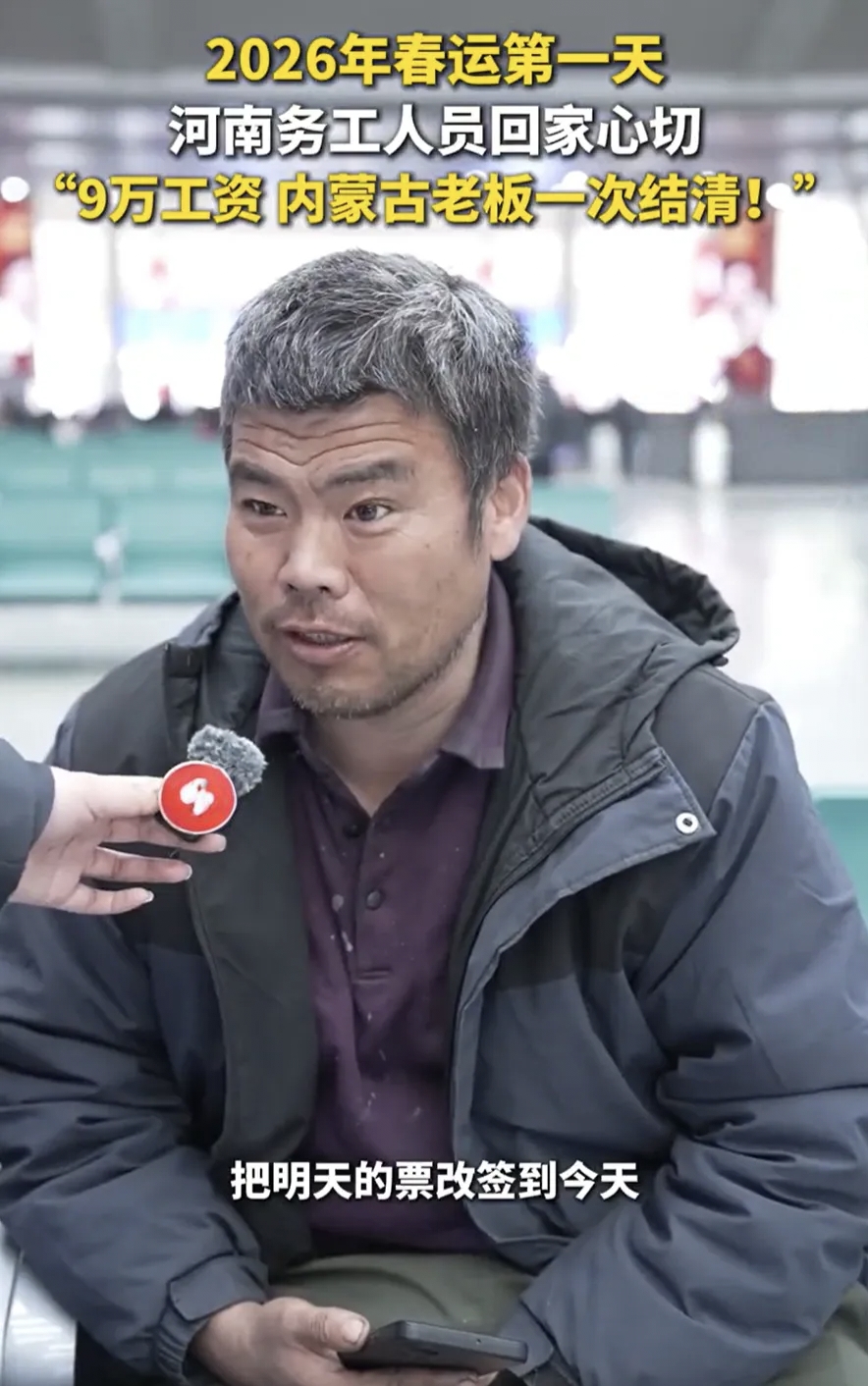 2026年春运第一天,全国各大火车站迎来返乡高峰,记者在候车大厅随机采访一位准备回家的务工大哥,没想到短短几句话,直接把他的内蒙古老板送上热搜,全网打工人都羡慕哭了。