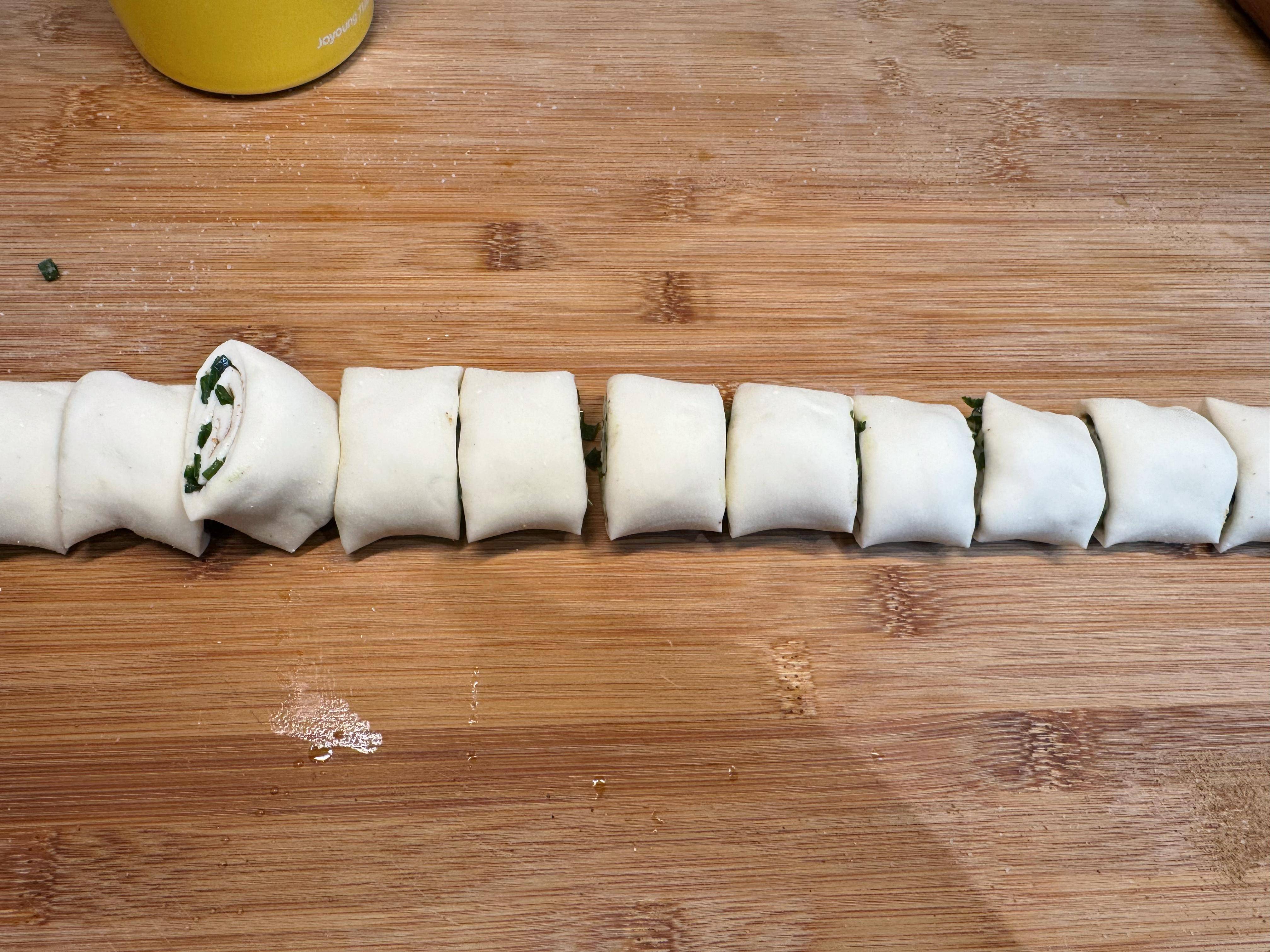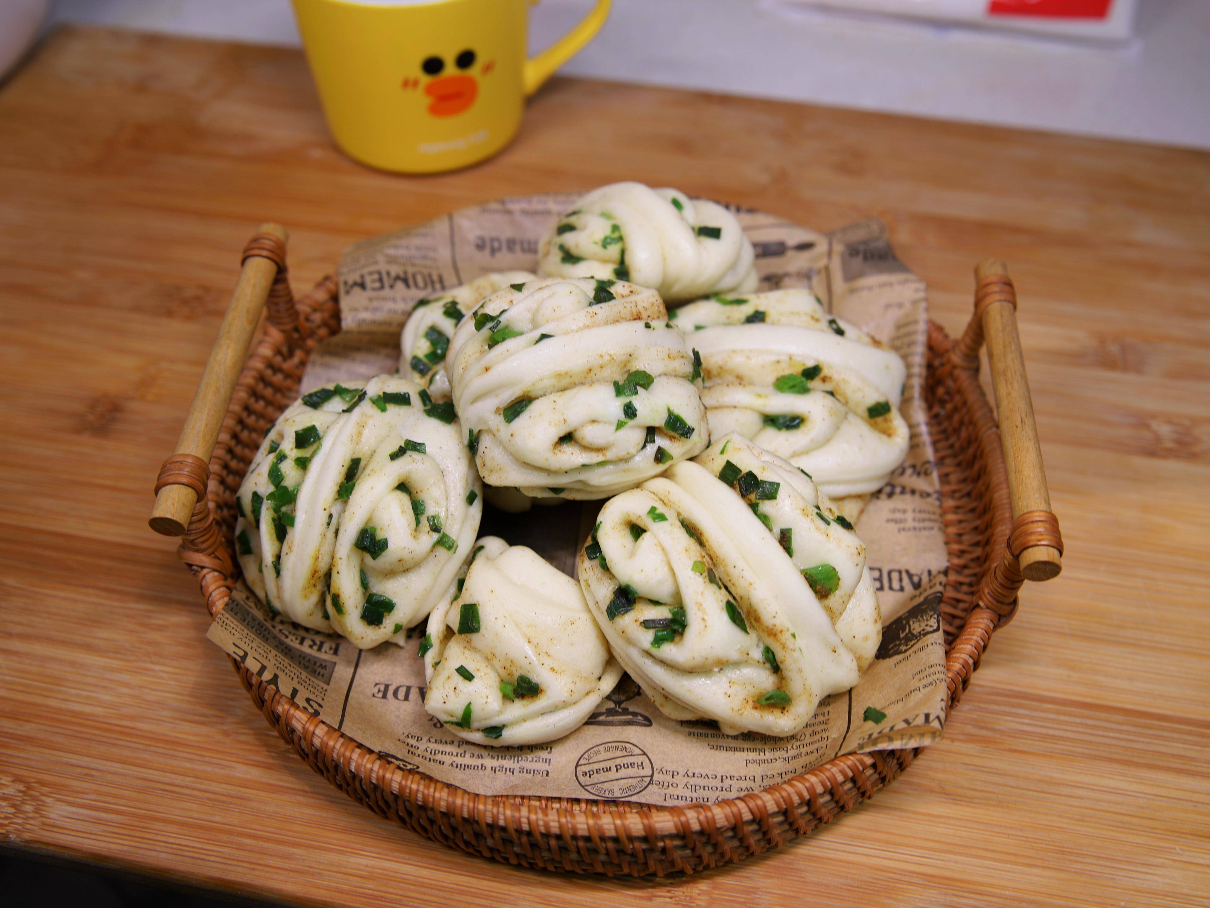 葱油花卷做法如下:用料有馒头自发粉 300 克、温水 160 克、盐、十三香、食用油、小葱、小苏打一小勺。