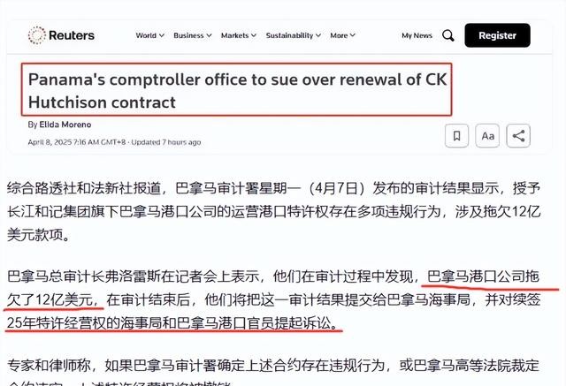 审计结果表明,长和集团于2021年续签巴拿马运河港口特许权,存在诸多违规之处。