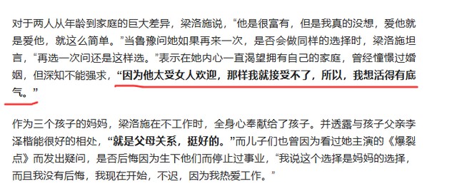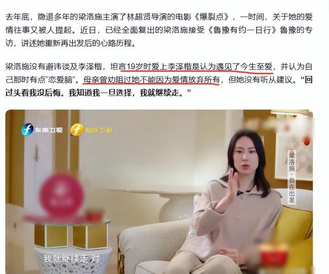 不过梁洛施并没有后悔自己的选择,而她也知道婚姻不能强求。