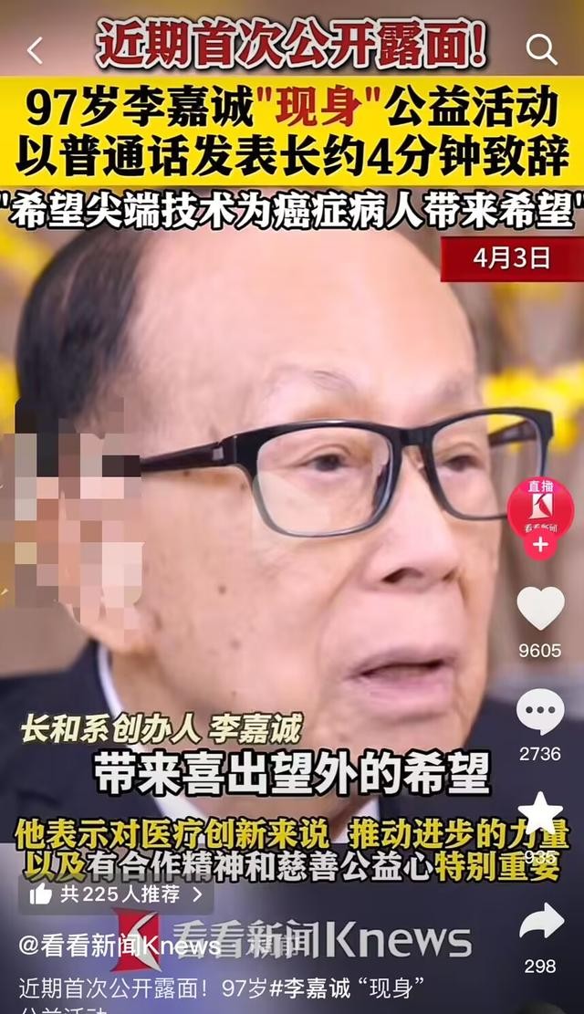 直到4月3日李嘉诚以预录短片的形式“现身”公益活动。