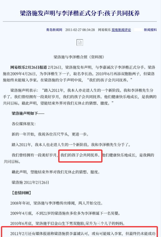 毕竟,梁洛施是李泽楷三个孩子的母亲,二人分手之际曾宣称会共同抚养孩子。