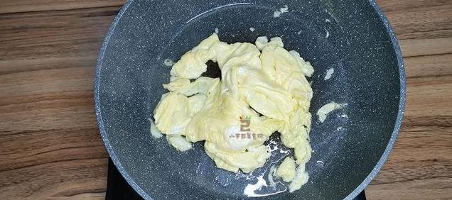 2、鸡蛋需要提前磕到碗里打散,继而开火加热锅里的油,热透之后放鸡蛋,简单几下炒凝固先盛起来。