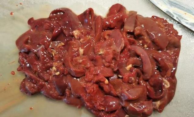 1、新鲜的鸡肝150克左右,将其逐一片成薄片,这样容易清洗,炒着也方便。先加点面粉,料酒搓搓,之后换几次水冲干净。