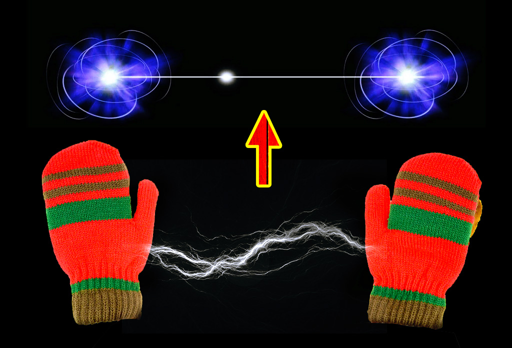 当这两只手套被放入一个不透明的盒子中时,我们无法知道盒子里装的是左手套还是右手套,因为两只手套处于一种叠加态。只有当我们打开盒子,观察到一只手套时,另一只手套的状态也随之确定。如果这两只手套被分开放置在相距很远的地方,这种确定性仍然存在,这就是量子纠缠的一种表现。