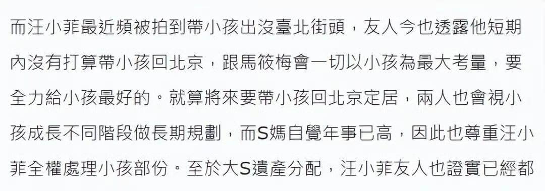 根据媒体报道,S妈和汪小菲在遗产分配问题上达成了共识,一切按照法律程序进行。尽管表面上看似和谐,但其中可能经历了多轮沟通和协商。毕竟,这不仅关乎巨额财富的分配,更关乎子女的成长和福祉。双方需要在法律框架下,平衡各自的利益,并为子女的未来做出最佳安排。