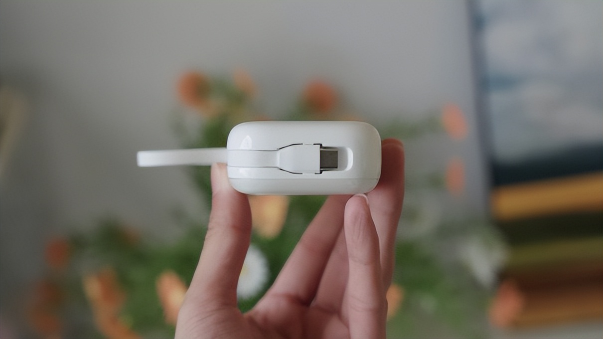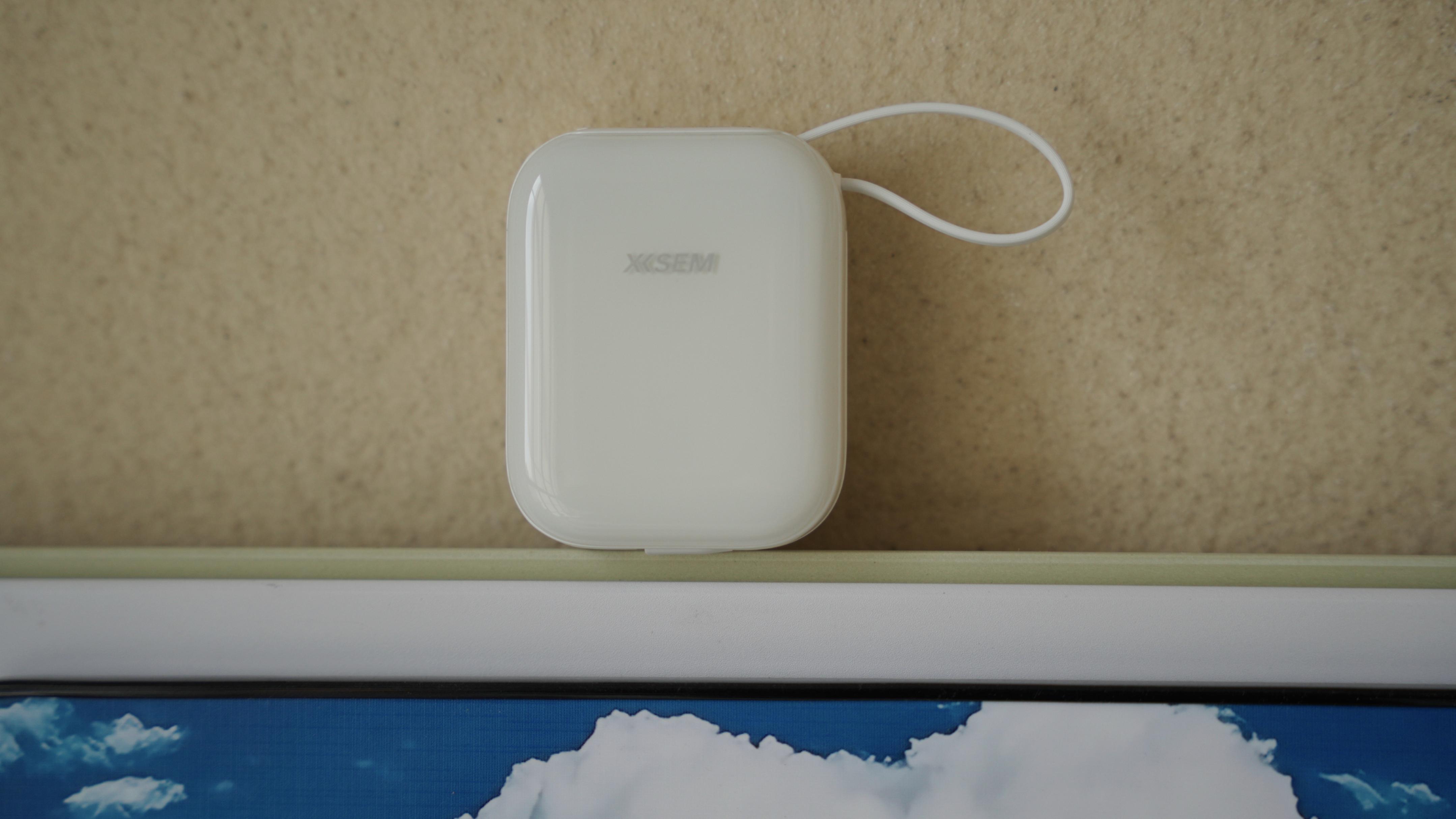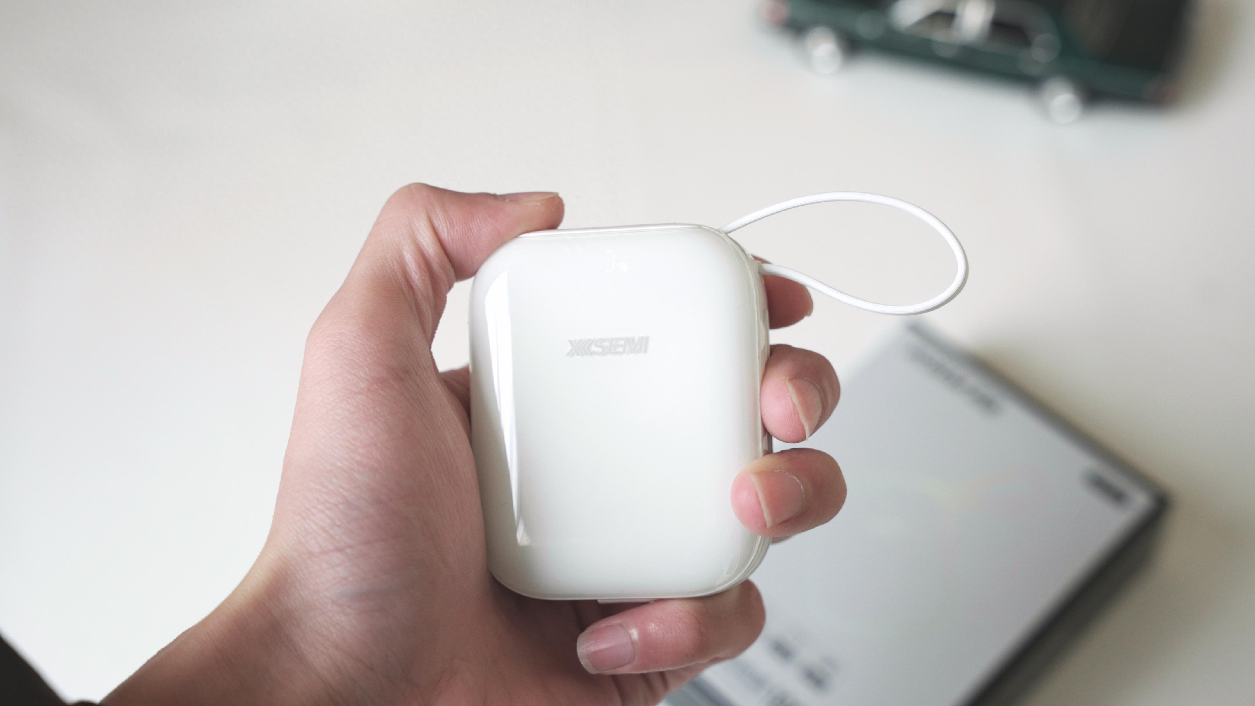 和以前的老式板砖充电宝比起来,它的优势显而易见,极致便携: 半个手掌大小,颜值极高的纯白机身。