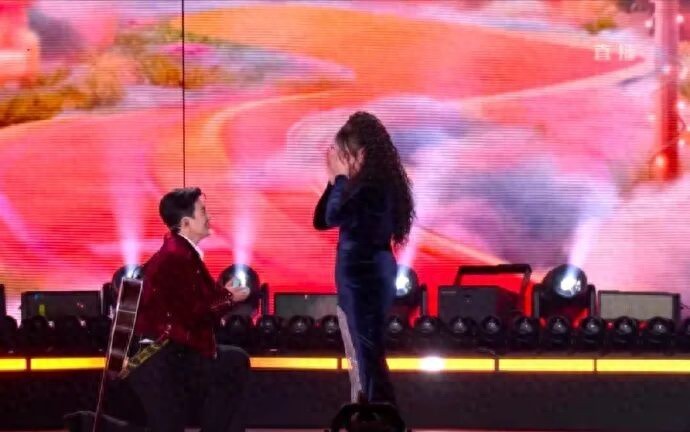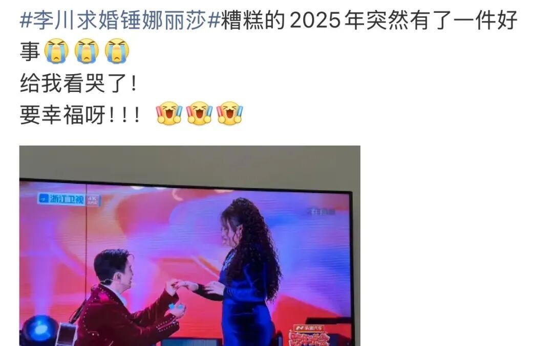 其实两人合唱《我的心里只有你没有他》的时候,就已经有点不对劲了。这首歌选得太巧,歌词句句戳心,台下观众早有人嘀咕:“这不会是要干点啥吧?”结果一语成谶。李川事后说,这个形式想了好久,一直拿不定主意,后来突然想到锤娜丽莎提过,希望在舞台上被求婚,于是趁着这次跨年晚会,悄悄策划了这场“公开告白”。