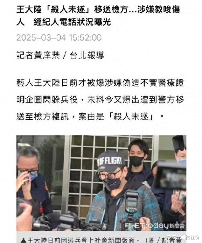 事情是这样的:据台湾媒体报道,王大陆因对网约车服务不满,涉嫌教唆他人殴打司机。更让人震惊的是,相关聊天记录和视频也被曝光,成了他“罪行”的铁证。事件曝光的导火索,竟然是因为他之前的逃兵役风波,警方在调查过程中意外发现了这起陈年旧案。