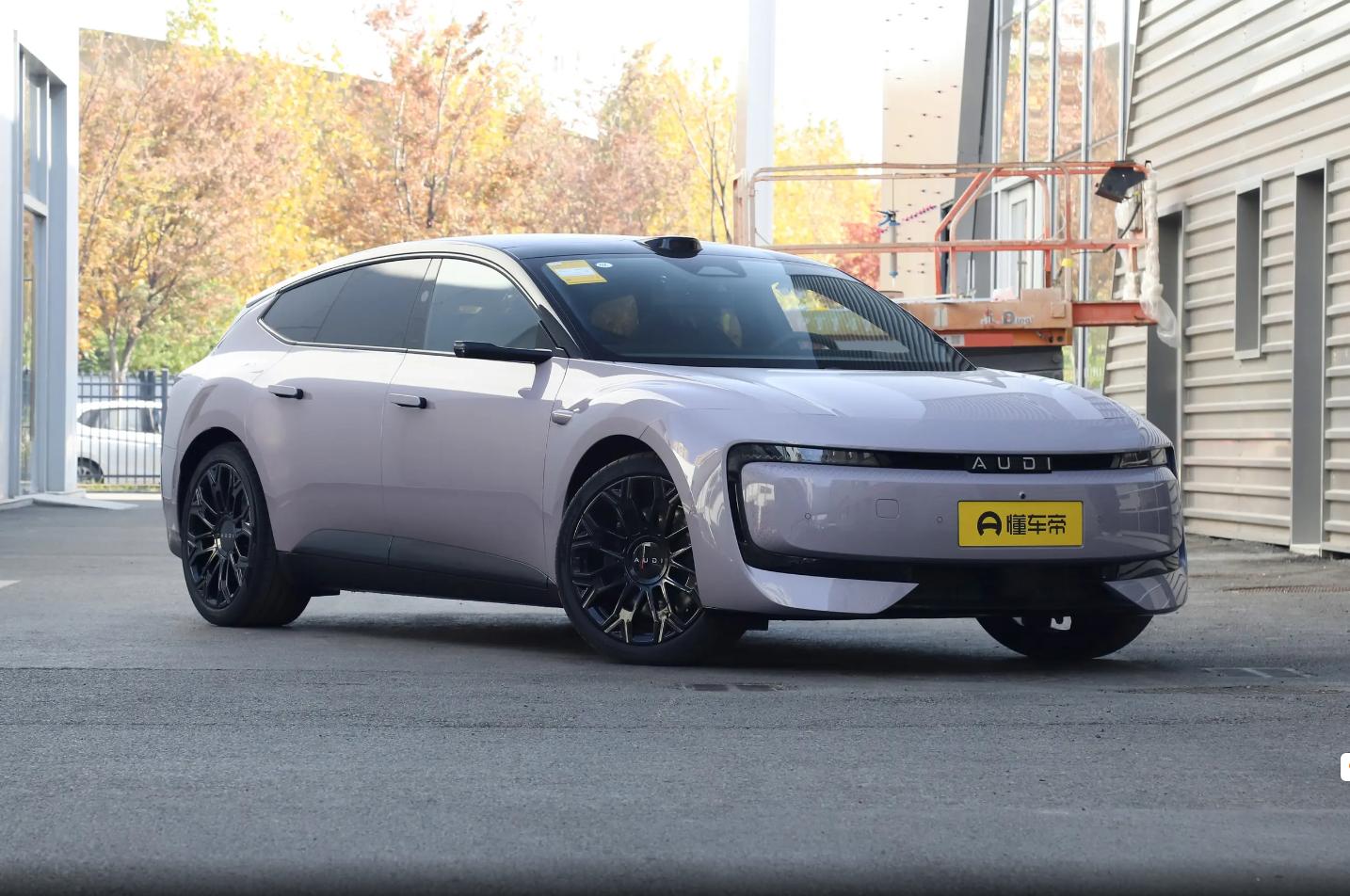 车头部分,标志性的奥迪四环车标镶嵌在封闭式格栅中央,彰显着品牌的尊贵与自信。格栅两侧,犀利的大灯组犹如一双锐利的眼眸,采用了先进的矩阵式 LED 光源技术,不仅照明效果出色,还能根据不同的驾驶场景自动调整光型,为夜间行车提供更安全的保障。大灯组下方,独特的进气口设计不仅增加了车辆的运动感,还能有效降低风阻,提升续航能力。