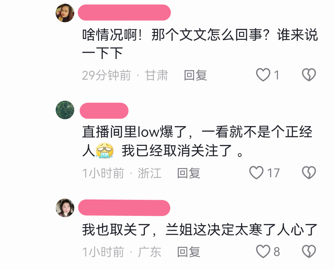 谁知如今干不下去,又要求回来,这样的人物,张兰怎么放心用她?由于担心张兰被骗,热心的网友于是在评论区喊话,说是看不惯文文带货的风格,觉得嚣张又闹腾,准备取关这个账号了。