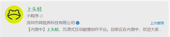 2026 年1月9日,据《读佳》独家消息,腾讯正在内测一款名为"上头蛙"的AI故事互动产品,目前以微信小程序形式向部分用户开放测试。该产品主打由生成式人工智能驱动的沉浸式互动叙事体验,试图在泛娱乐与 AIGC 技术的交汇点上,为年轻用户群体打造全新的内容创作与消费模式。