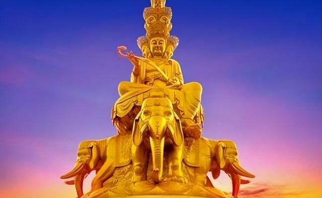 普贤菩萨代表德行,他骑着六牙白象,象征着践行善事,功德圆满。