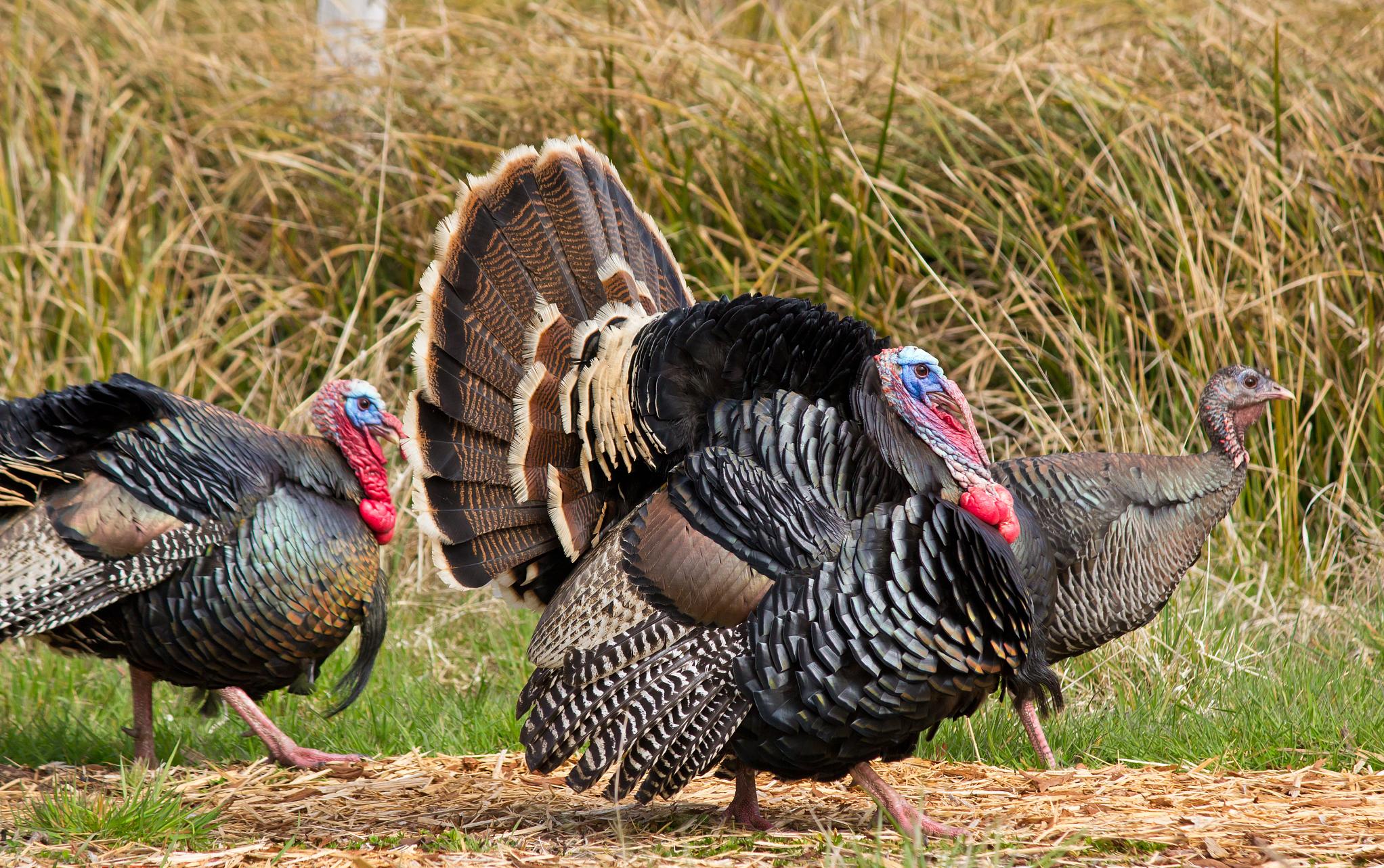 公火鸡尤其引人注目,它们的额部、耳根和咽下部有珊瑚状的肉瘤,可以随着情绪变化呈现出红、紫、青等多种颜色。
