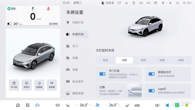 新增后排空调记忆,一键恢复上次关闭前的空调状态,无需每次上车都反复调整;新增LOGO灯开关,新增导航混音开关,用户可自由开启/关闭导航音压低媒体音功能。同时,仪表报警音逻辑也进行了更新,雷达报警和开门报警时都不会影响音乐播放,并针对音乐播放体验也进行了优化,可直接播放音乐,使用更便捷。