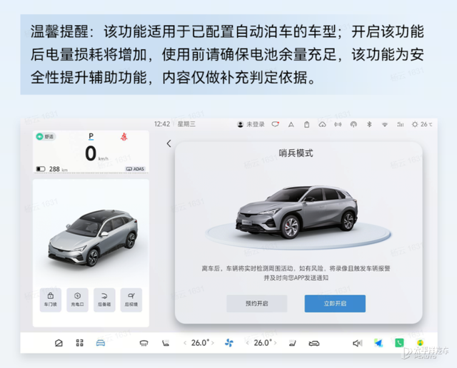 具体来看,此次阿尔法T5新增哨兵模式,支持“立即开启”和“预约开启”两种方式,当监测到有人或其他车辆靠近时,会启动闪灯提醒,引发注意避免磕碰;若已经发生碰撞,车辆在感应到震动时便会启动鸣笛报警,并向APP推送报警信息,让车主及时获知车辆状态。