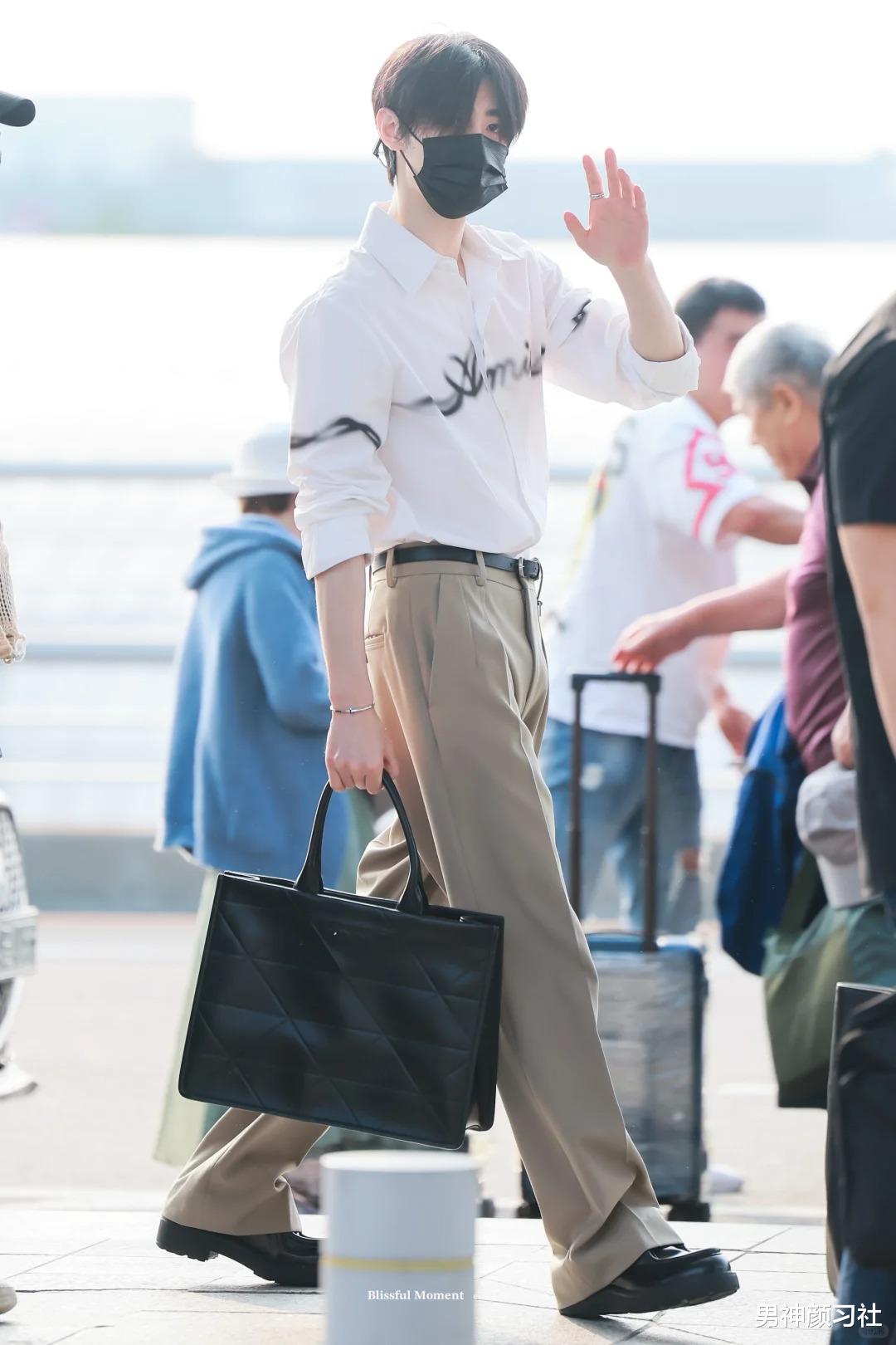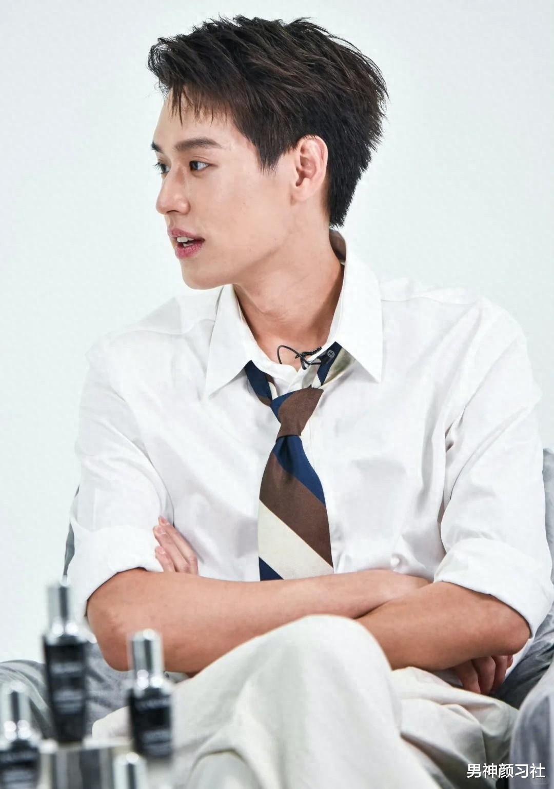 一定有很多人会想到黑裤子,白色和黑色加在一块儿,就显得特别禁欲。张凌赫之前穿的这一身,就有很多女生为他着迷,腿长脚长,他驾驭起这套简直是有得天独厚的优势在里头。而且他还加上了一条领带,这样子整个人就更加有斯文霸类的气质了。