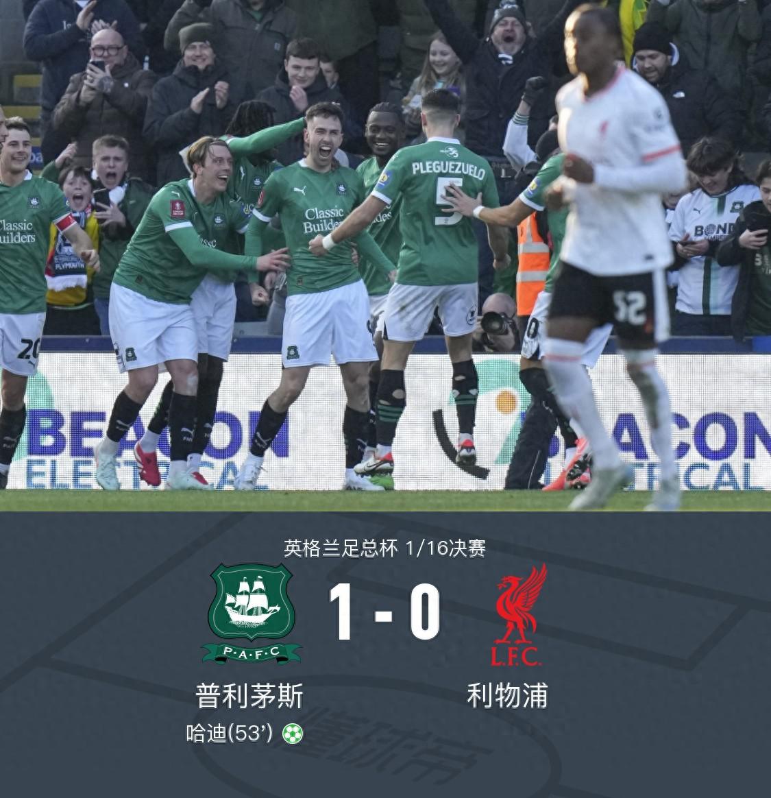 利物浦输了,真是没想到。普利茅斯这支小球队居然赢了,足球就是这么神奇。比赛过程跌宕起伏,双方你来我往,最后普利茅斯以微弱优势胜出。这场比赛真是让人印象深刻啊。
