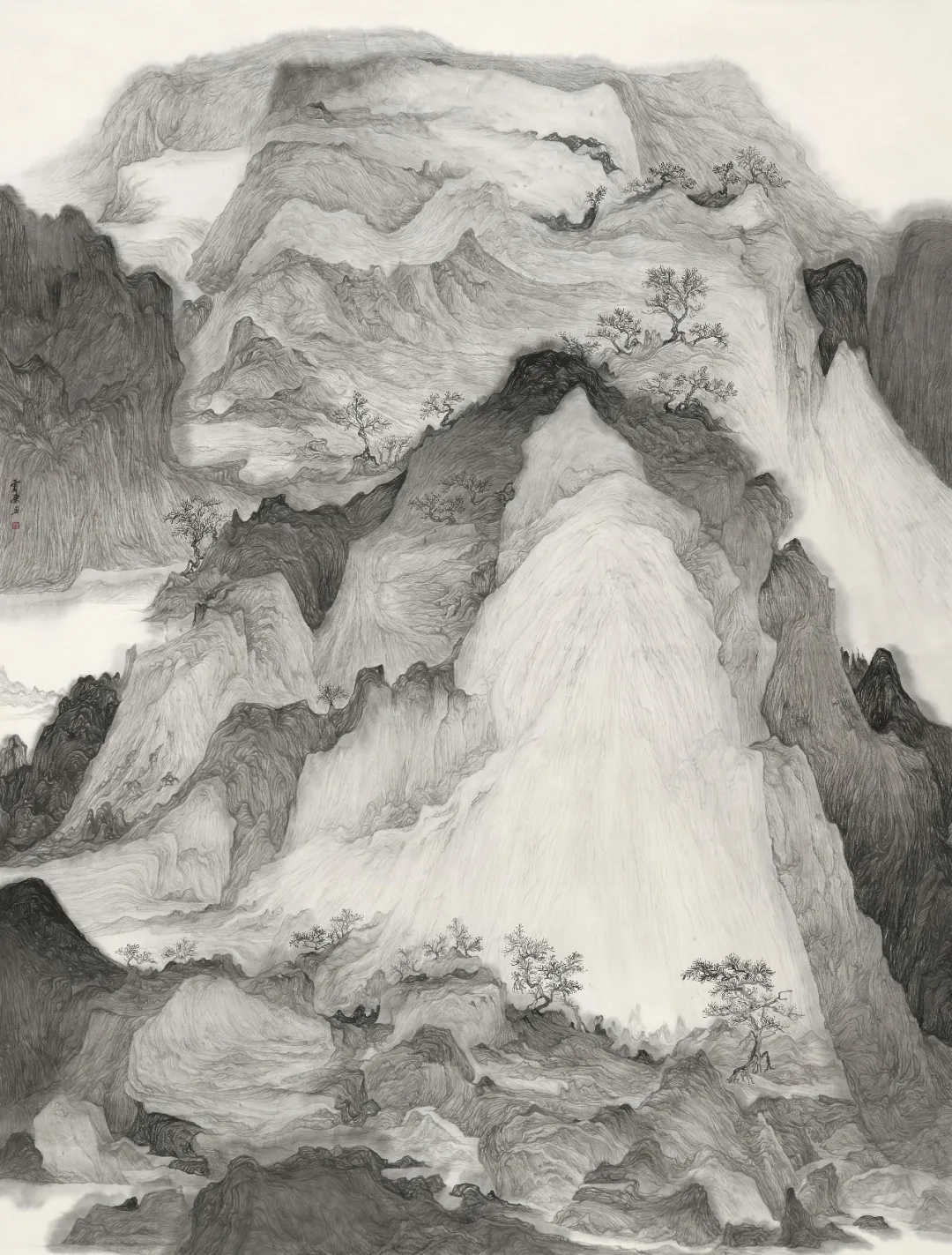 水墨山水画的价值不在于再现自然,而在于构建一种心灵的山水。它是画家与观者共同完成的内心景观。在那里,外在的清冷转化为内在的澄明,视觉的寂静升华为精神的宁谧。水墨之黑与宣纸之白,在此间不是简单的对立,而是永恒的对话——如同阴与阳,呼与吸,有与无,共同构成一个完整而鲜活的宇宙。