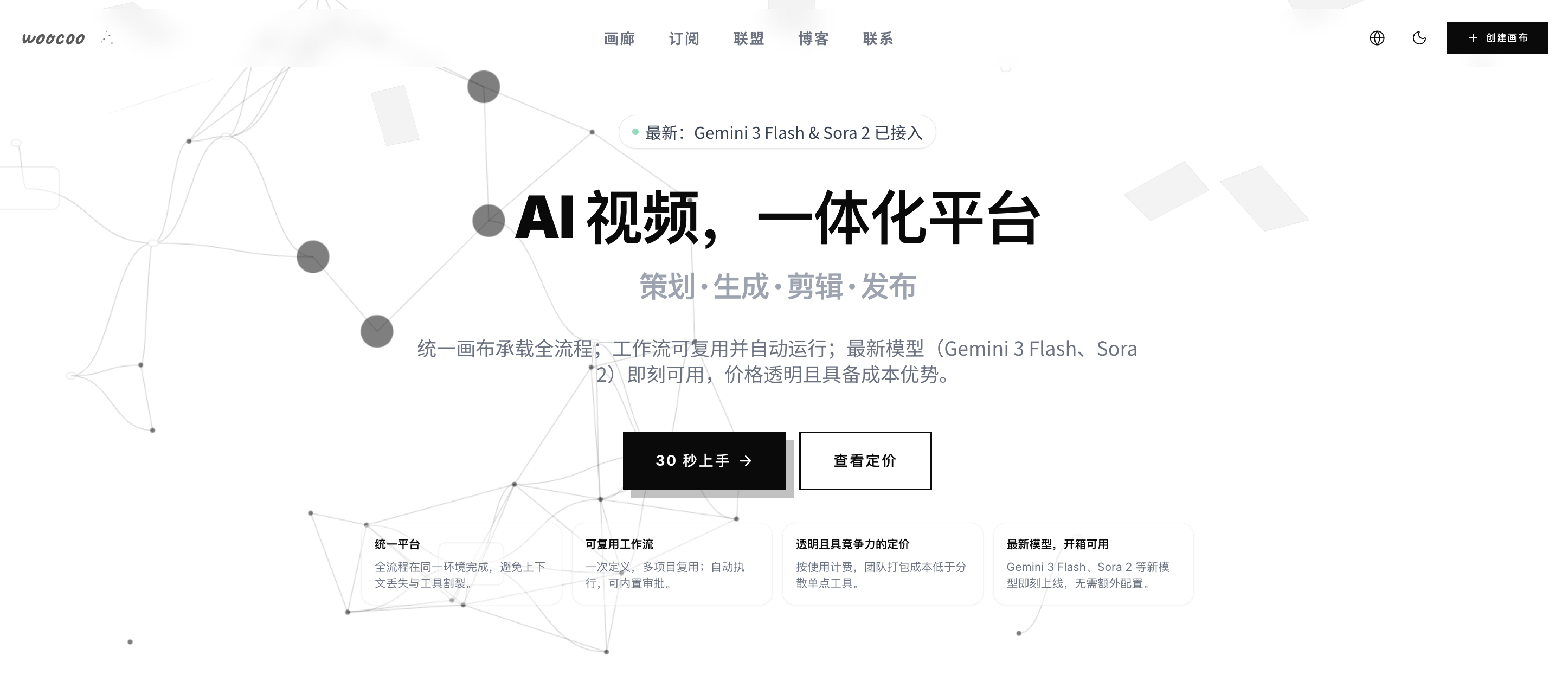 Woocoo AgentFlow 是一款面向视频、图片与自动化工作流的AI 原生画布,特别适合内容团队、市场和创作者用一