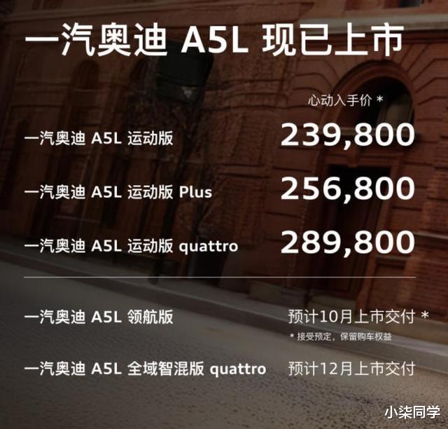 配图为:2026款一汽奥迪A5L 2.0T 运动版 quattro