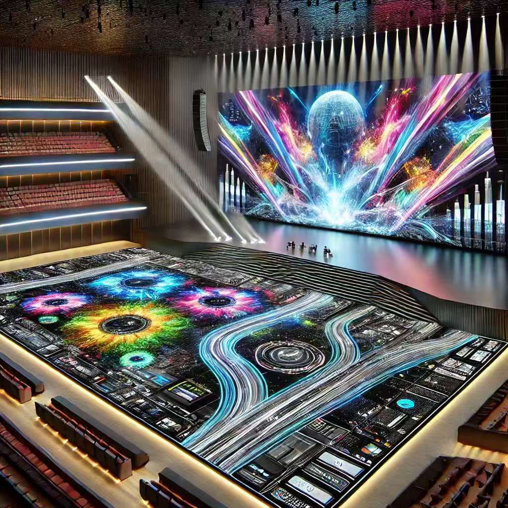 结合墙面显示屏,电子地毯可打造360°沉浸式环境,增强观众代入感,满足现代剧场对科技效果的高需求。