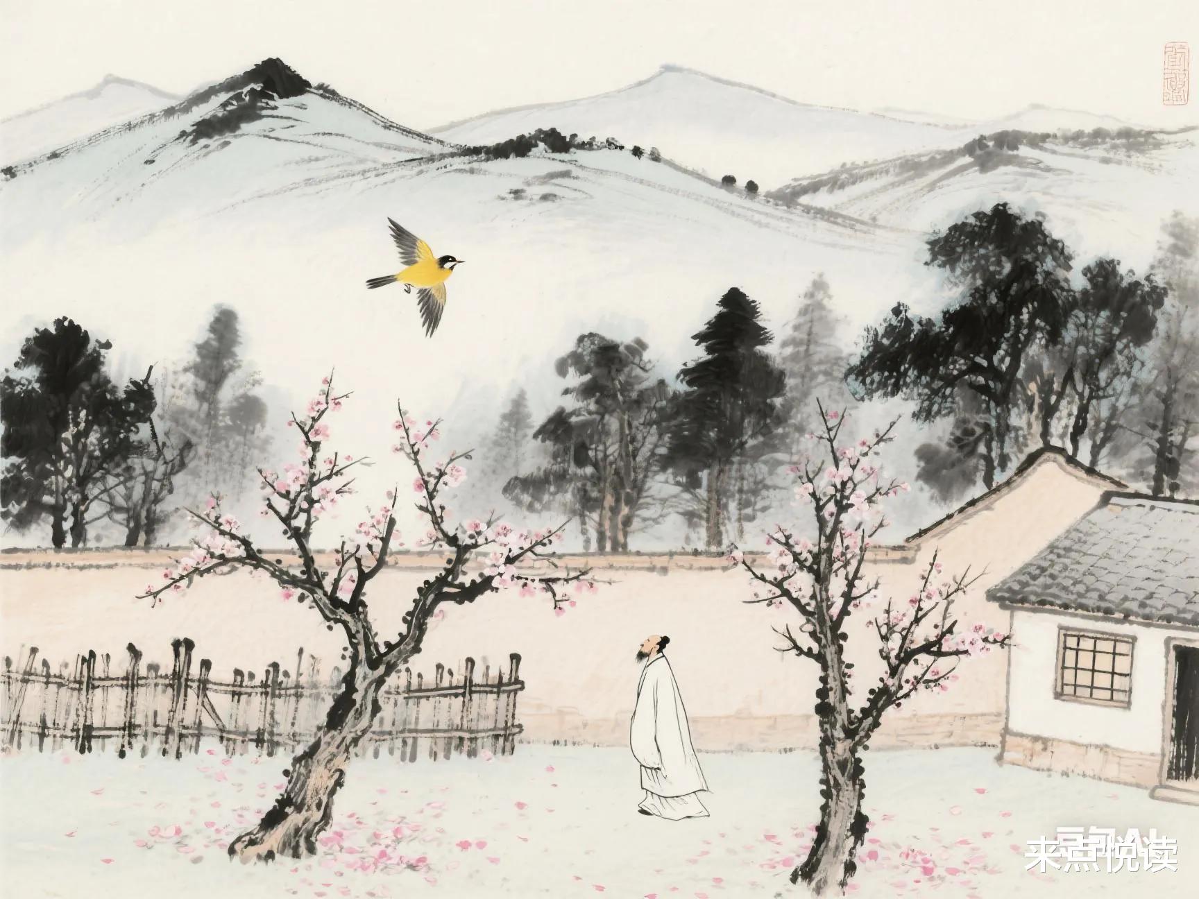 次句“妆点商山副使家”,读来皆是辛酸味儿,十分呛人鼻孔。商山是诗人被贬之地,不仅远离京城,而且偏僻无比,拿如今生活与当年相比较,确实是艰苦得很,连身为副使的家都需要靠两株桃杏树来妆点。