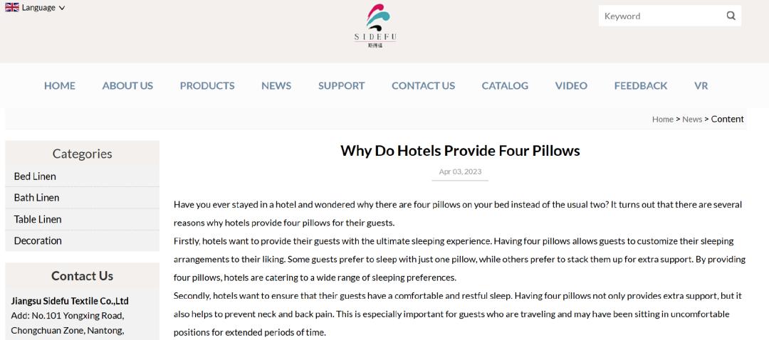Sidefu China. (2023, April 3). Why do hotels provide four pillows. Sidefu China.